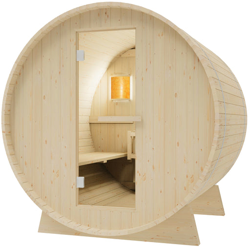 View full detailsDurasage Health 4-Person Outdoor Barrel Traditional Steam Sauna with Shingled Roof, Glass Door and 6kW Wet or Dry Harvia Heater and Lava Rocks DWS-BARREL